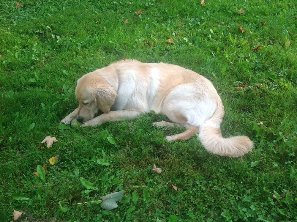 14.4.2015 Přišel nám pozdrav od naší Bekky. Prý se naučila zahrabávat si věci na zahradě