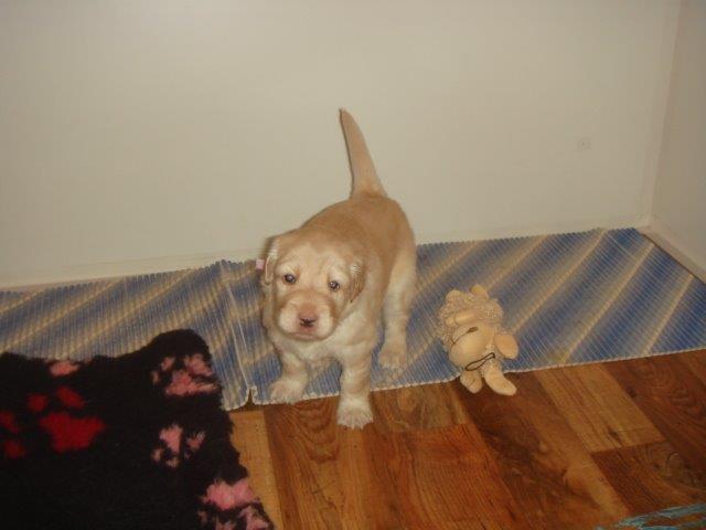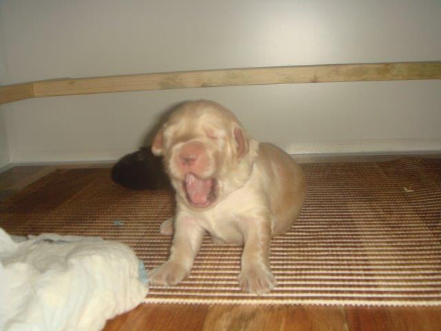 27.1.2015 S radostí vám oznamuji, že jsem šťastná maminka, včera se mi narodilo 5 štěňátek, dva plavý kluci a tři holčičky, dvě znakaté a jedna plavá. Musím říct, že to byla pěkná fuška, protože miminka jsou pěkní cvalíci. První byl plavý kluk 620g, druhá znakatá holčička 650g, třetí plavý kluk 614g, čtvrtá znakatá holčička 337g a pátá plavá holčička 510g. Koukněte se jak jsou nádherní:
