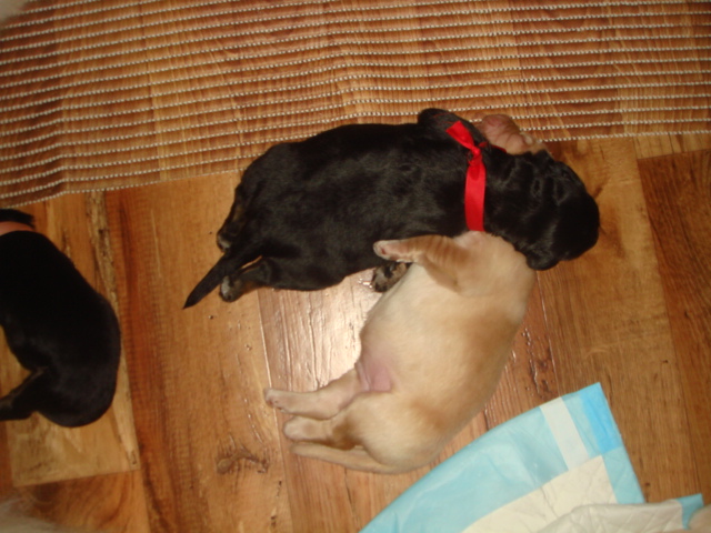 . Dnes mi miminka zkontrolovala paní Černá (kontrola vrhu) a opět jsem dostala pochvalu, celkové hodnocení vrhu: krásná, statná, dobře socializovaná štěňata. To jsem pyšná maminka