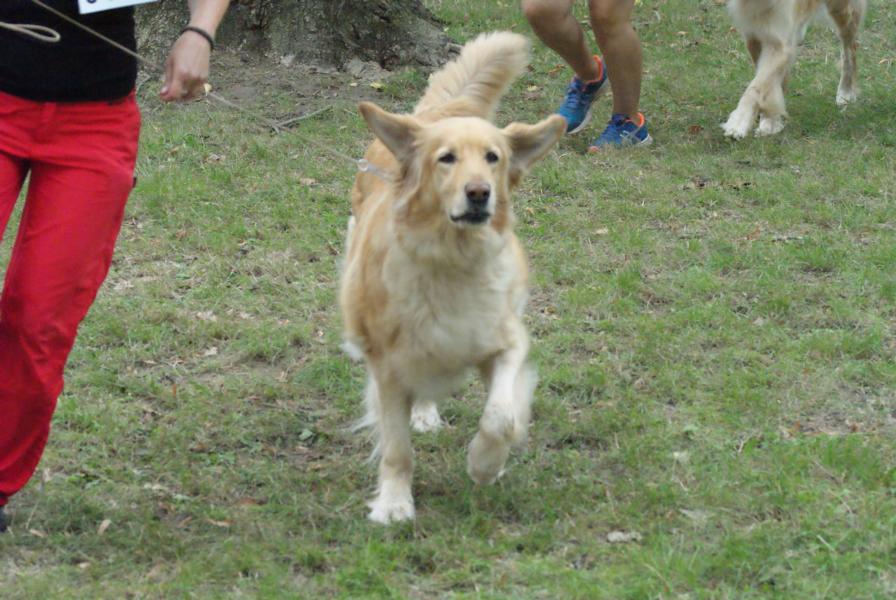 Jak je vidět z fotek, zkušební pes nešel volně u nohy pomocníka: